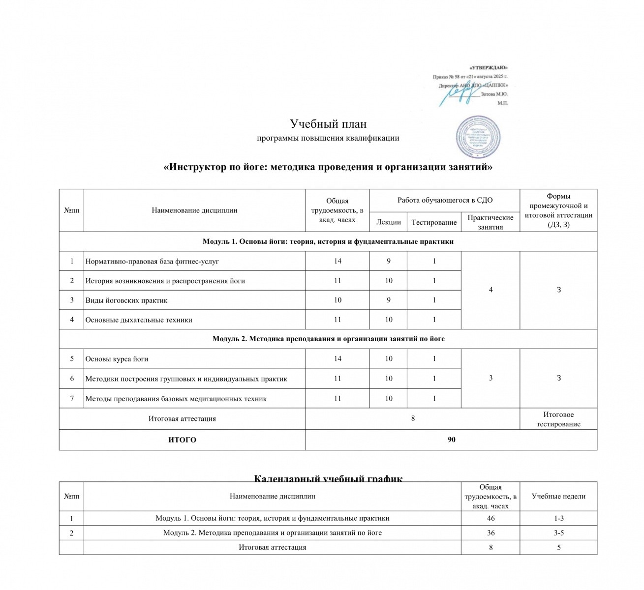«Фитнес-тренер по йоге. Организационно-методическая подготовка и проведение занятий» с присвоением квалификации «Фитнес-тренер по йоге»» |
