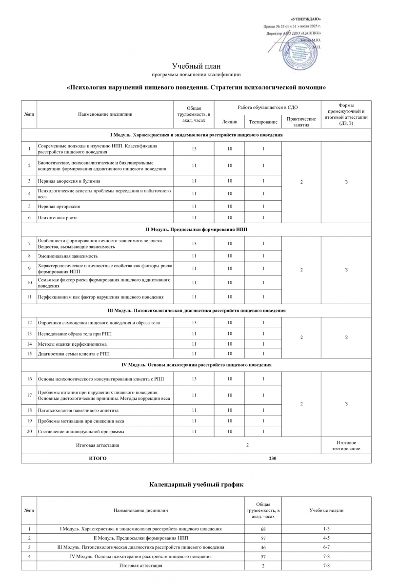 «Экспериментальная патопсихология в практике психолога: исследование психопатологических явлений» с присвоением квалификации «Патопсихолог» |
