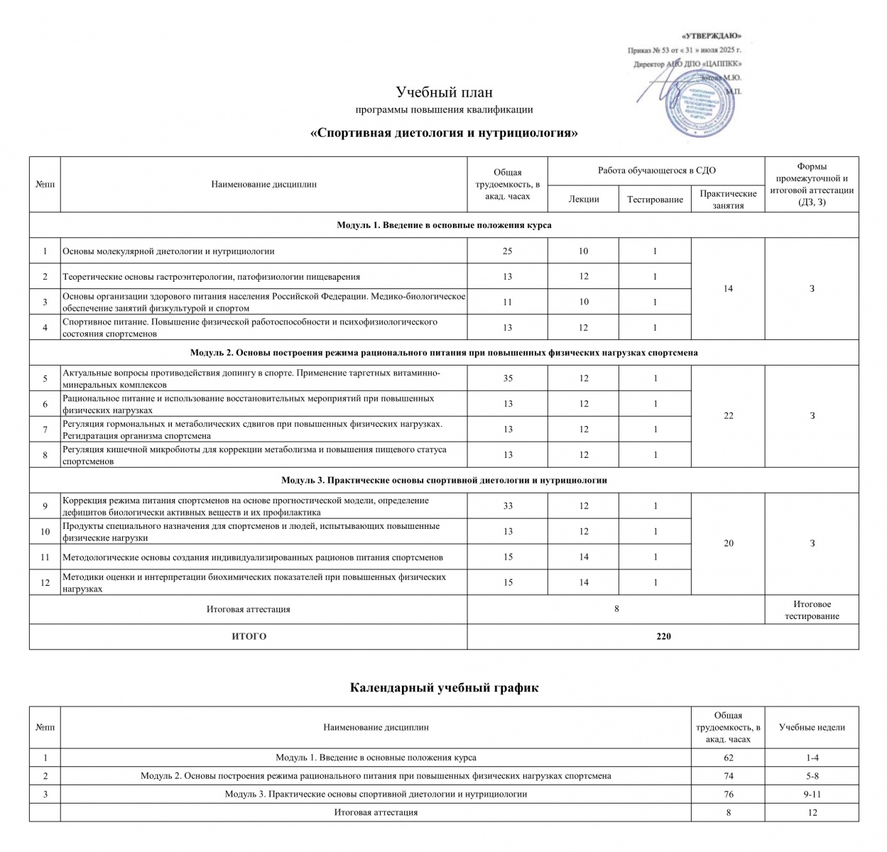«Спортивная диетология и нутрициология» с присвоением квалификации «Специалист по спортивной нутрициологии» |