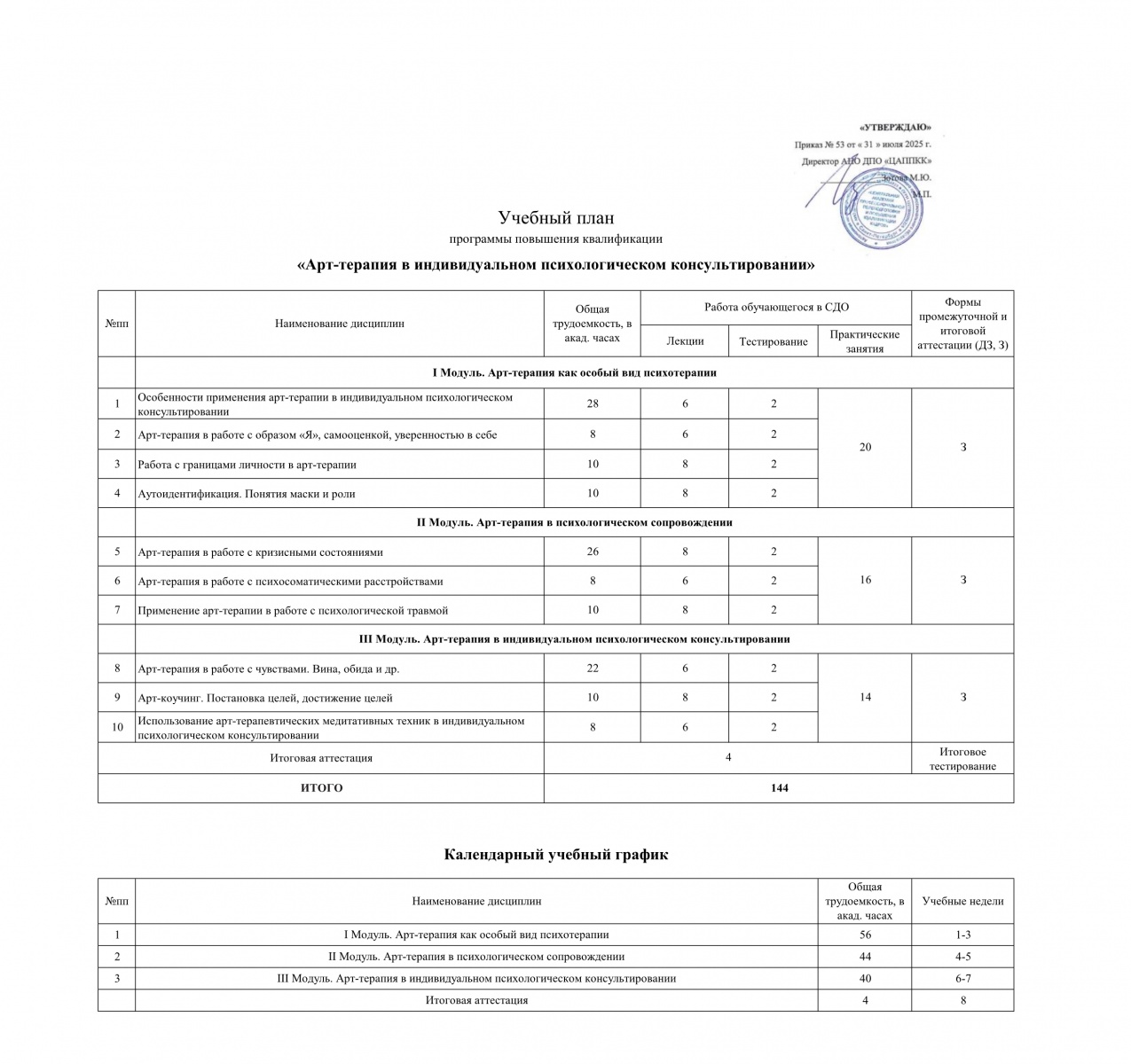 «Арт-терапия в практике психолога» с присвоением квалификации «Арт-терапевт» |