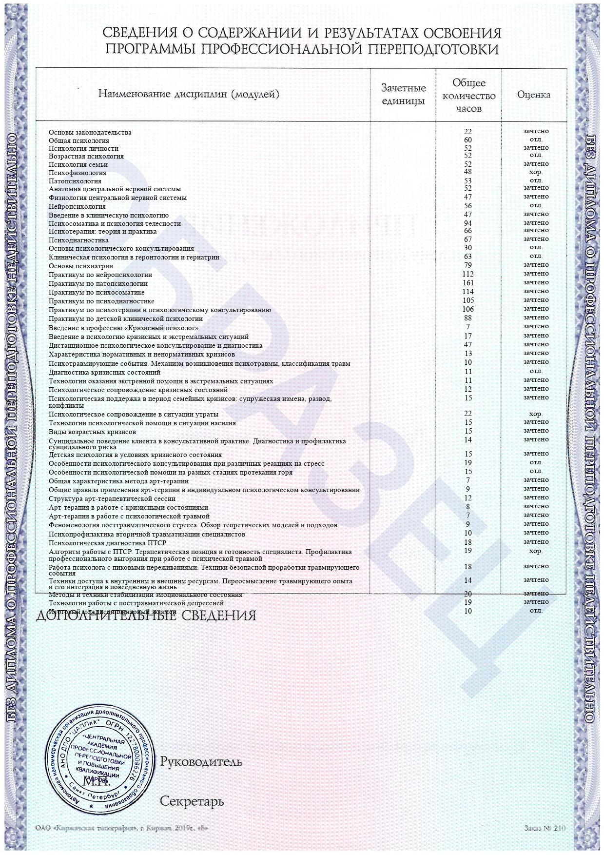 навыков диагностики и клинико-психологической помощи при заболеваниях, а также в кризисных и экстремальных ситуациях, проведения экспертного клинико-психологического исследования, клинико-психологического сопровождения пациента на всех этапах лечебного и (или) реабилитационного процесса.Кризисный психолог в своей работе помогает людям выбраться из неожиданного кризиса (смерть близкого, попытка суицида, потеря работы, физические травмы и многое другое), найти цель и силы жить дальше.