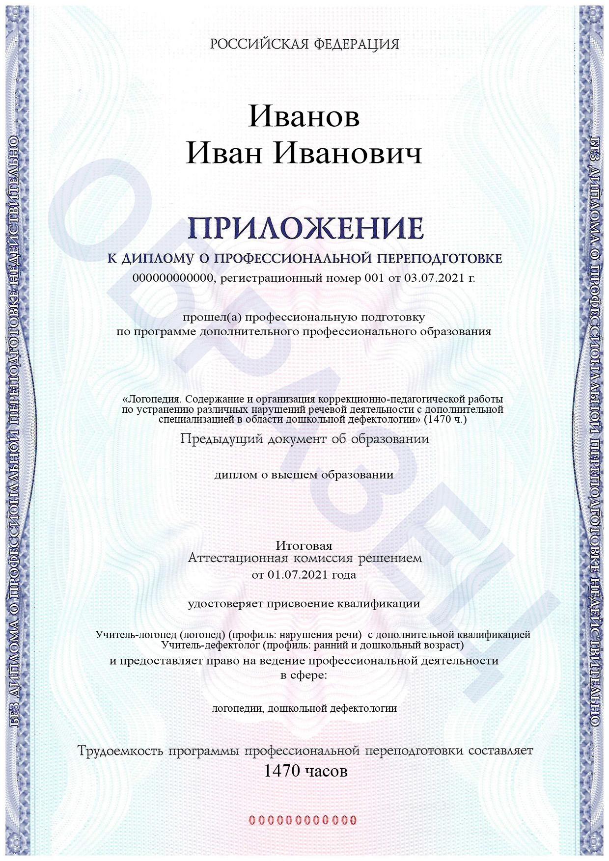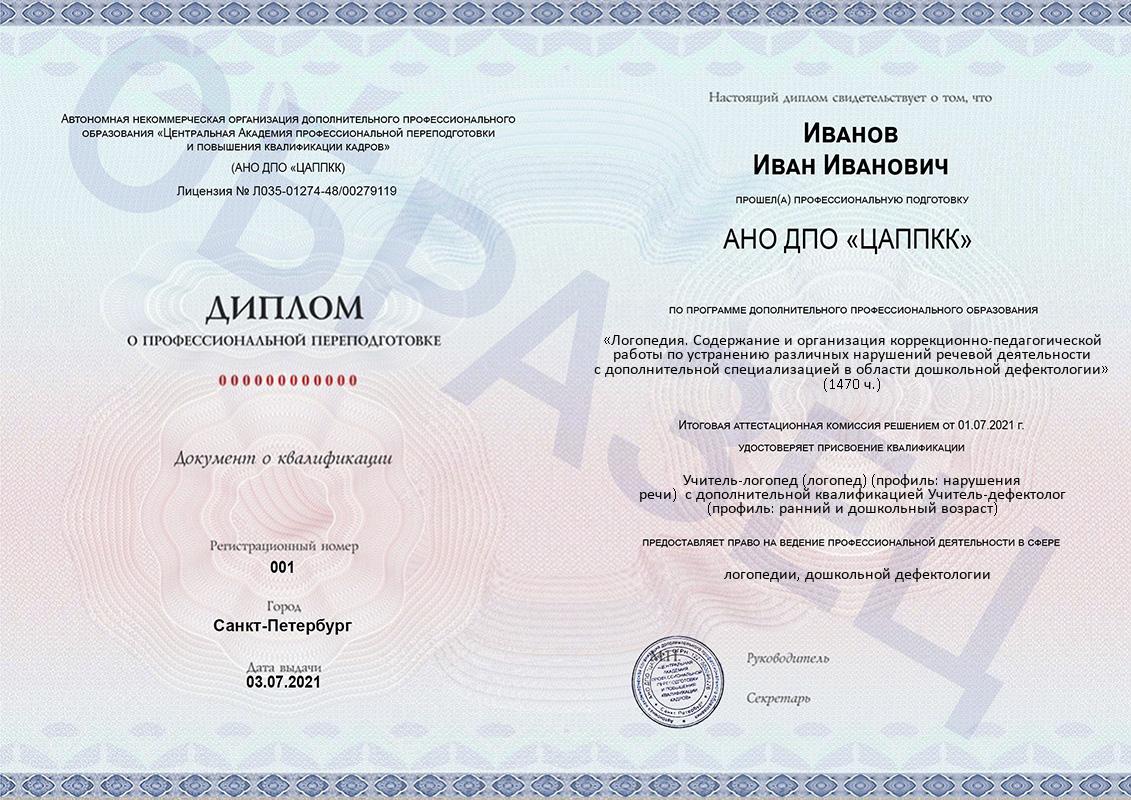 «Логопедия. Содержание и организация коррекционно-педагогической работы по устранению различных нарушений речевой деятельности с дополнительной специализацией в области дошкольной дефектологии» с присвоением квалификации «Учитель-логопед (логопед) (профиль: нарушения речи)» с дополнительной квалификацией «Учитель-дефектолог (профиль: ранний и дошкольный возраст)» (1470 ч.)