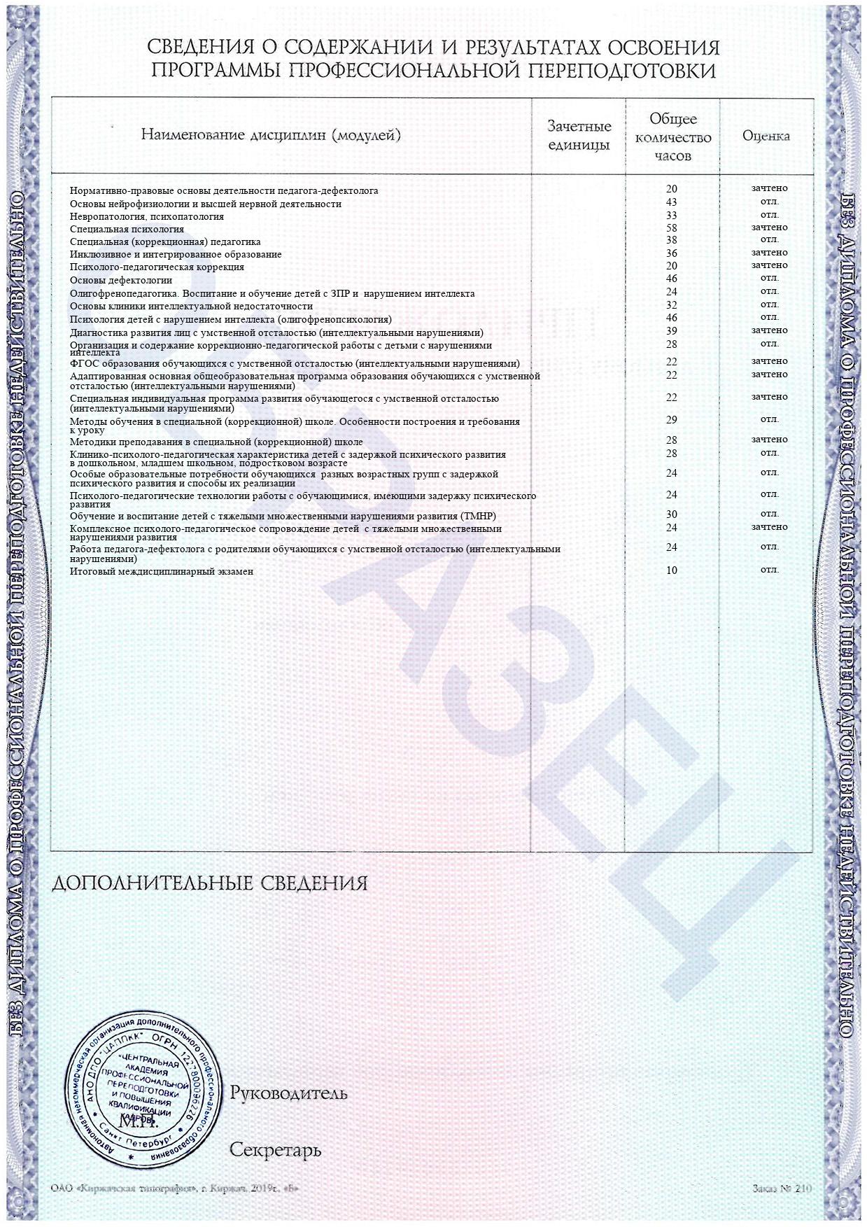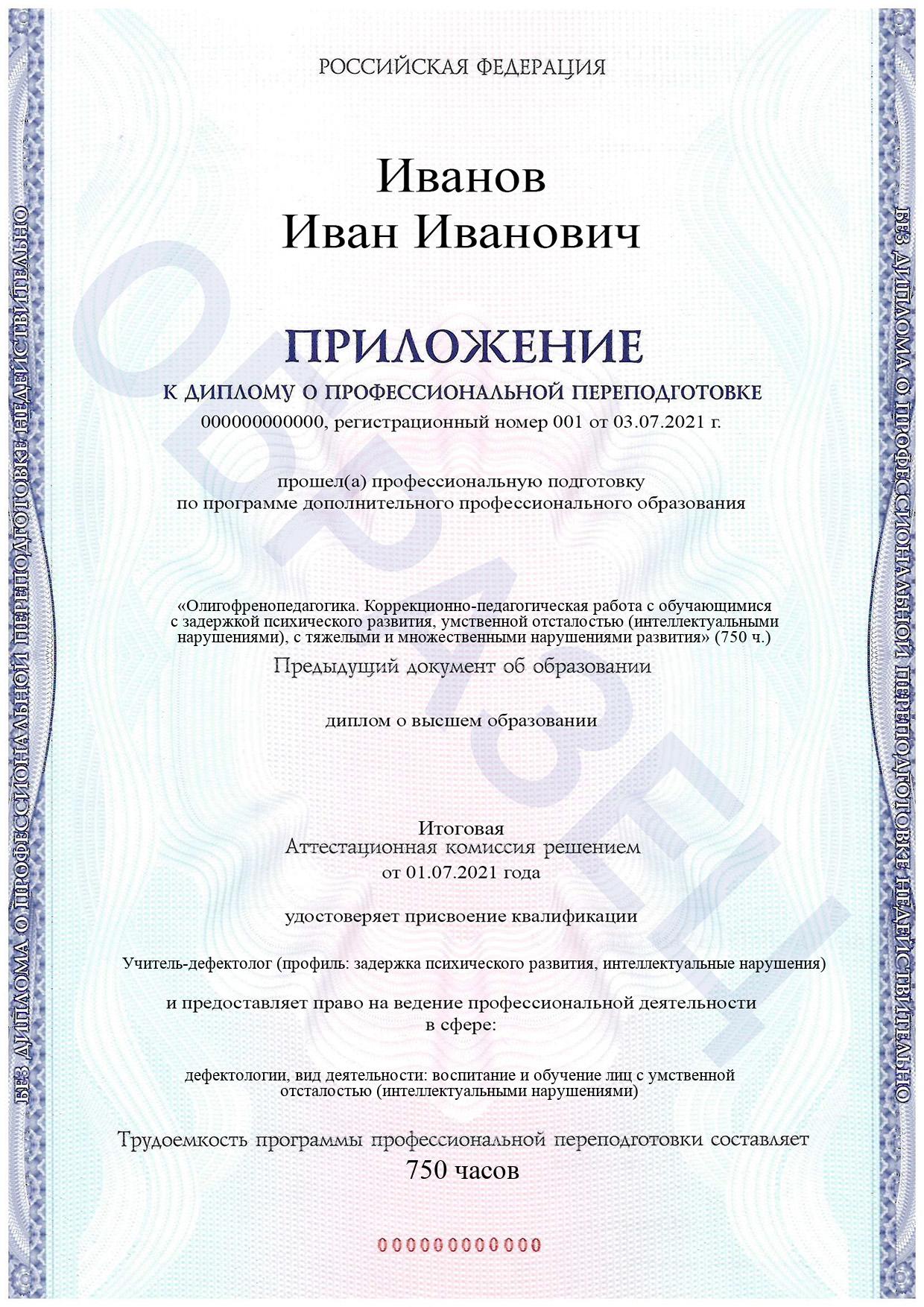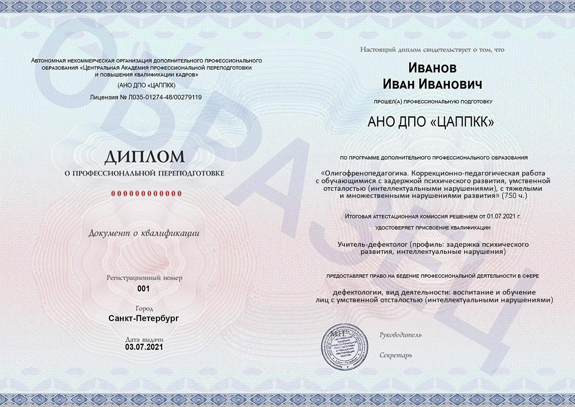 По окончании обучения вы получите диплом установленного образца с присвоением квалификации «Учитель-дефектолог (профиль: задержка психического развития, интеллектуальные нарушения)», дающий право на ведение профессиональной деятельности.