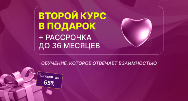 В честь праздника мы подготовили специальные условия. С 9 по 15 февраля на все программы профпереподготовки и повышения квалификации действуют скидки до 65%. Кроме того, при поступлении на программы общей стоимостью от 50 000 ₽ (от 30 000 ₽ на программах по логопедии), вы можете получить полноценный курс в подарок стоимость до 40 000 ₽ на выбор из нашей подборки → https://lp.appkk.ru/podarki